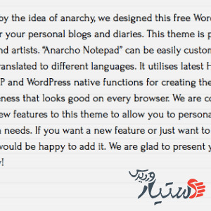 مشاهده نسخه دمو قالب anarcho-notepad دانلود قالب وردپرس Anarcho Notepad [sdfile url=”https://dl.dastyarwp.com/wp-theme/anarcho-notepad/dastyarwp_com_anarcho-notepad.zip”]