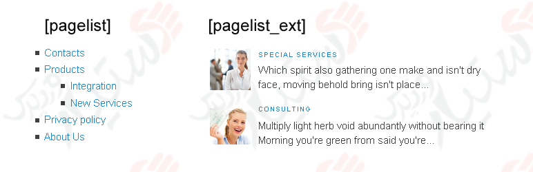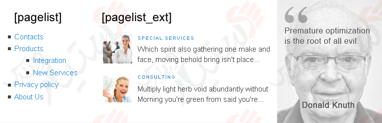 این افزونه امکانات قدرتمندی برای ساختار سایت و ایجاد لیست صفحات و بخش های محتوایی با استفاده از کدهای کوتاه در اختیار شما قرار می دهد.