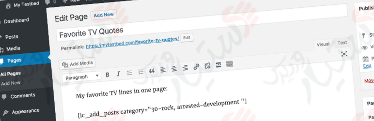 4. شروع به جاسازی پست ها در هر صفحاتی که دوست دارید با استفاده از کد کوتاه استفاده کنید.